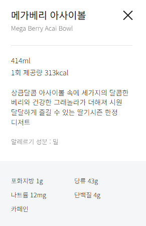 메가커피 아사이볼 구성
